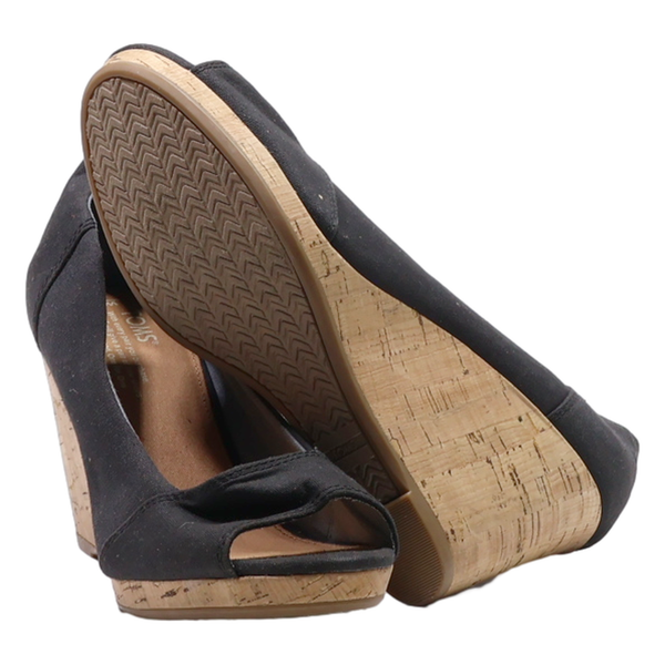TOMS Wedge Heels Black Canvas Womens UK 7