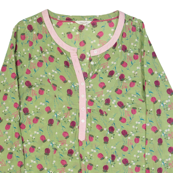 White stuff womens printed shirt green v-neck long sleeve floral uk 8