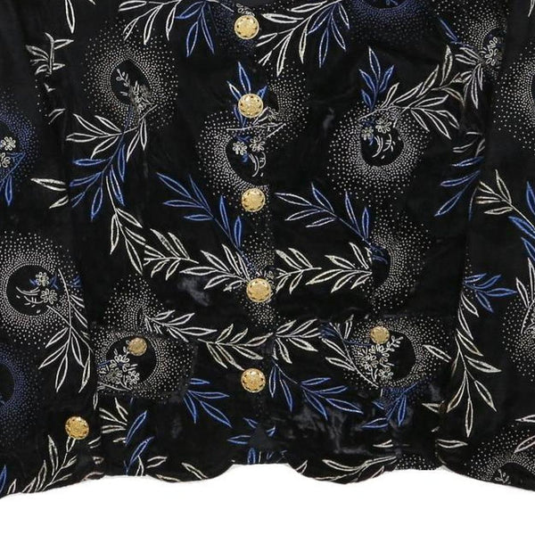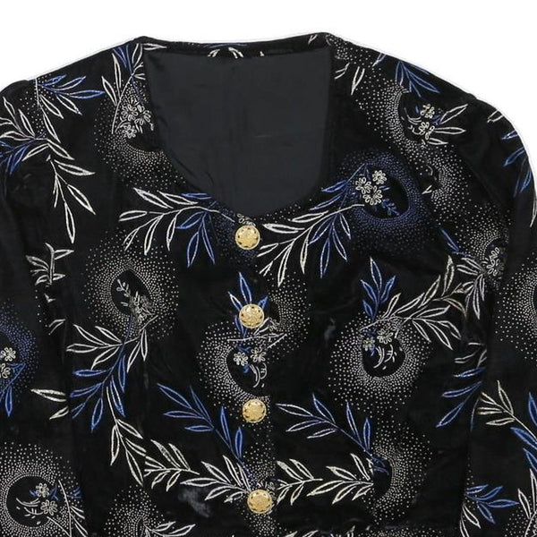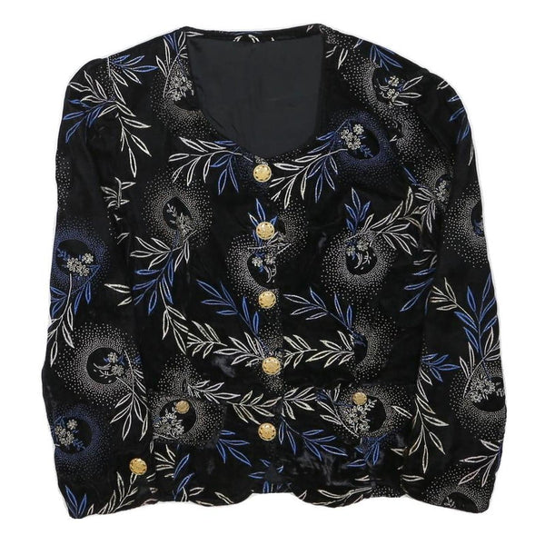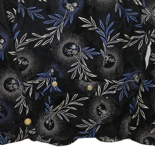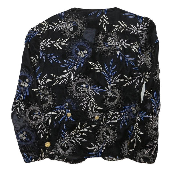 Womens Black & Blue Floral Button Jacket S Polyester Blend Elegant Patterned