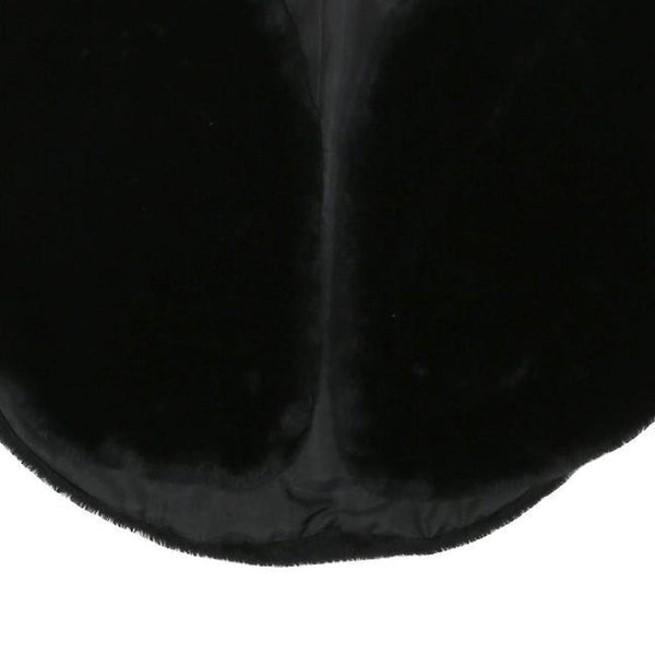 This womens jacket features a rich black faux fur exterior that offers a plush and soft texture, providing both warmth and luxury. Designed without visible closures, it presents a simple and elegant open front style.