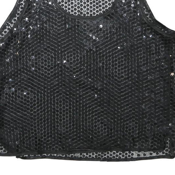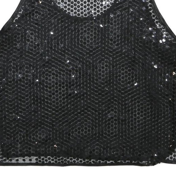 Womens Black Sequin Mesh Vest Sleeveless Round Neck XS Party Top Evening