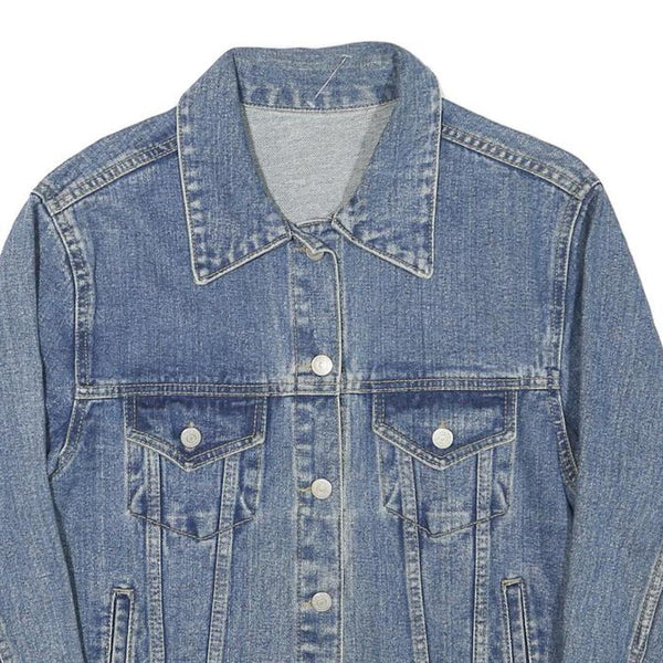 Womens Blue Denim Button Jacket S Cotton Blend Plain Classic Vintage Style