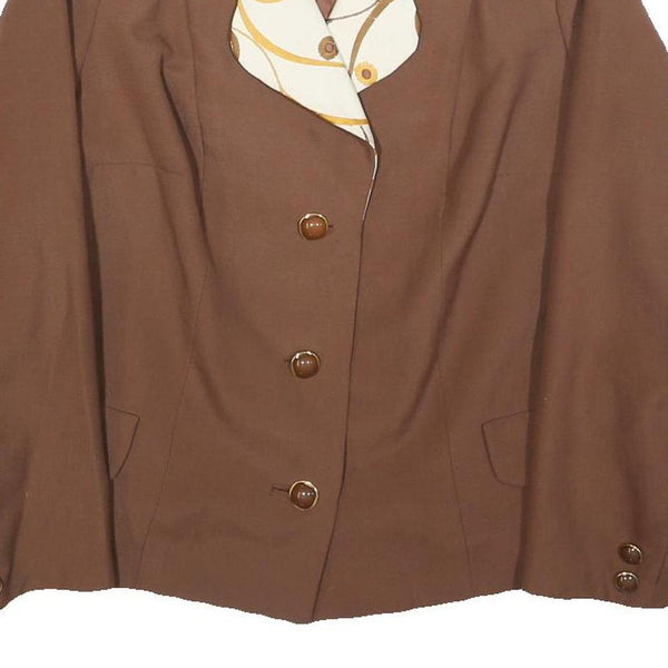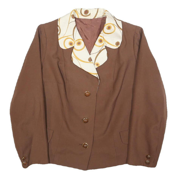 Womens Brown Cream Patterned Collar Button Jacket L Woven Classic Tailored