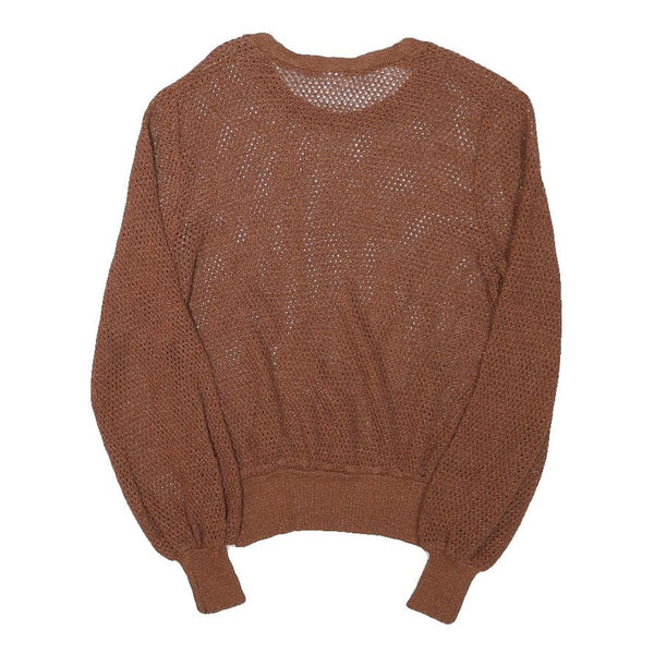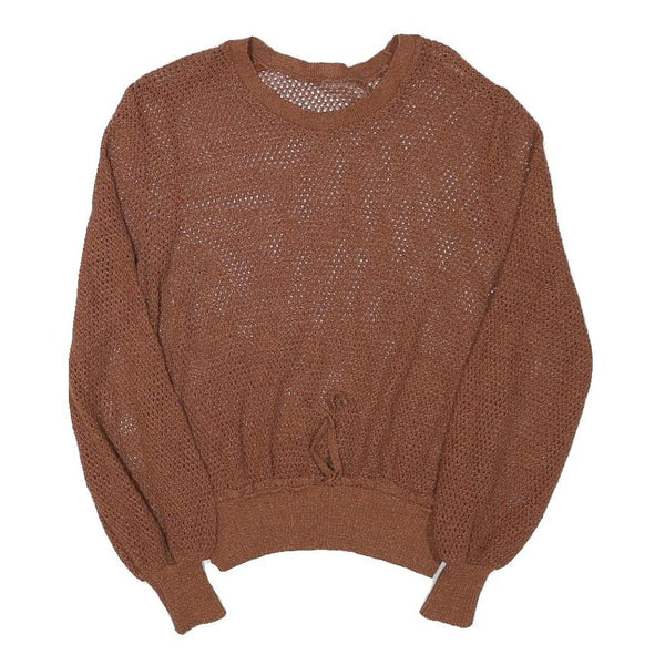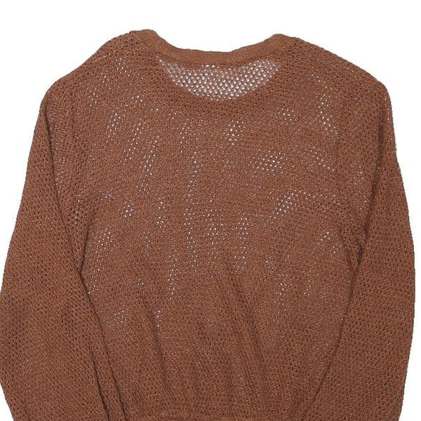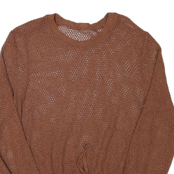 Womens Brown Open Knit Round Neck Lightweight Jumper XS Lightweight Knitwear