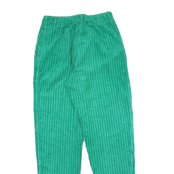 Womens Cotton Blend Regular Fit Green Corduroy Trousers W24 L28 Comfortable