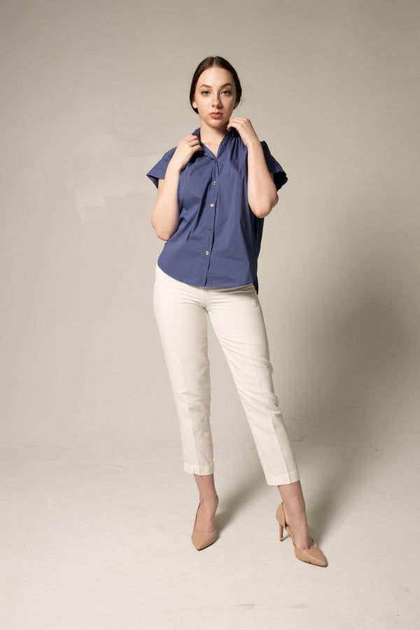 Womens gather collar shirt in navy – elegant blouse