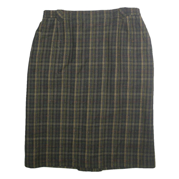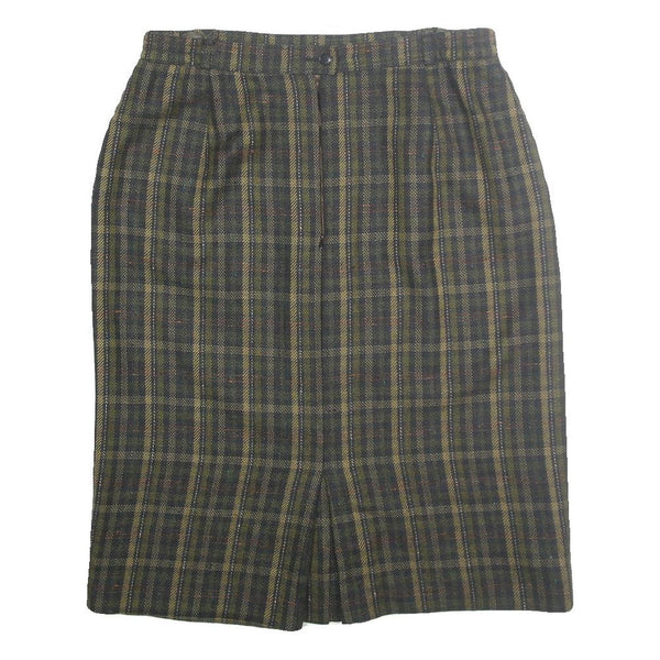 Womens Green Check Pencil Knee Length Cotton Blend Skirt M Classic Workwear