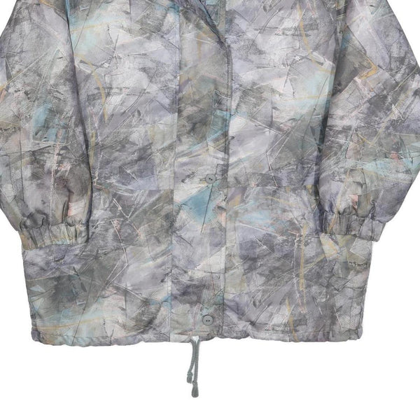 Womens Grey Abstract Print Zip Jacket L Polyester Blend Casual Lightweight