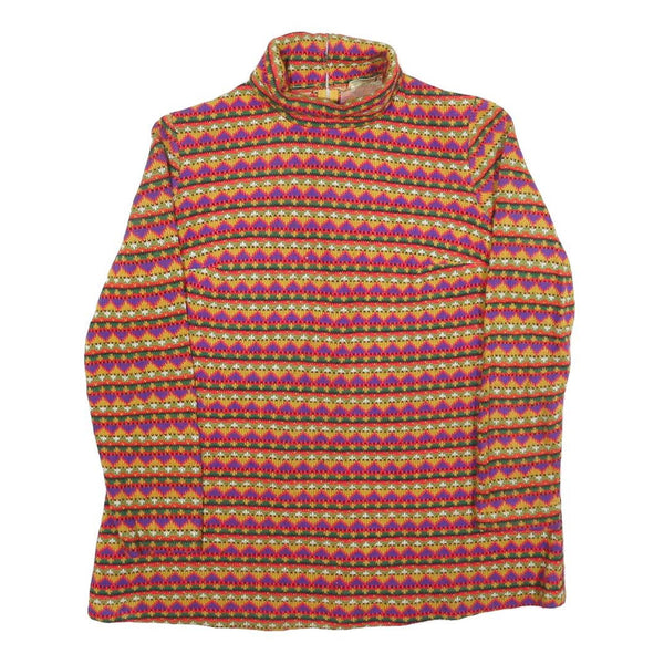 Womens Multi Patterned Acrylic Jumper Turtleneck Basic Knit M Colourful Striped