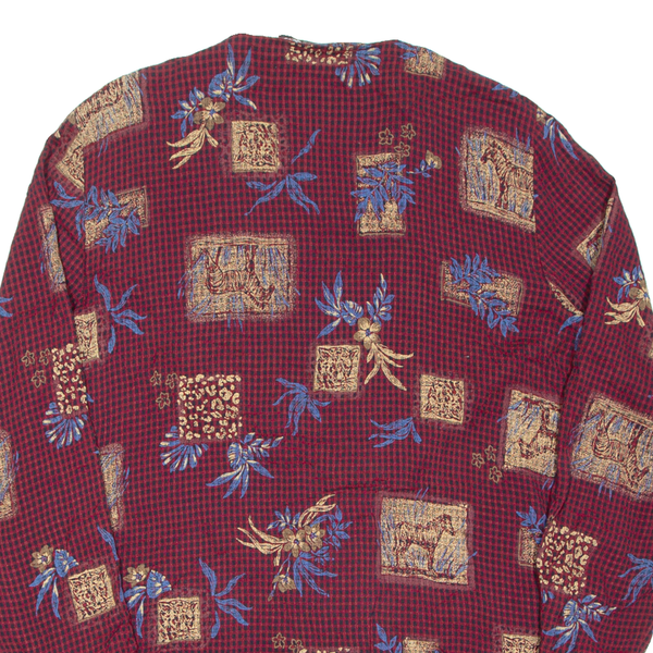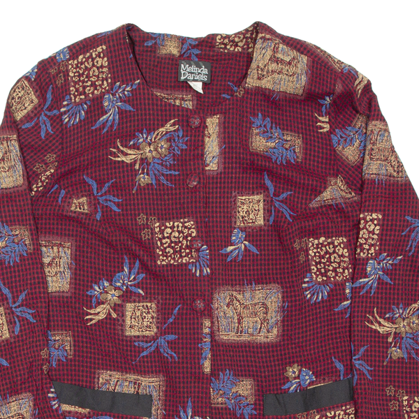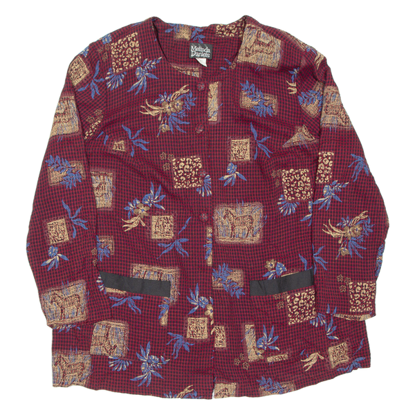 Womens Printed Blouse Maroon Long Sleeve Crazy Pattern UK 16