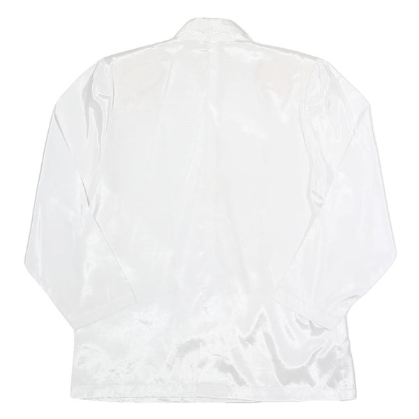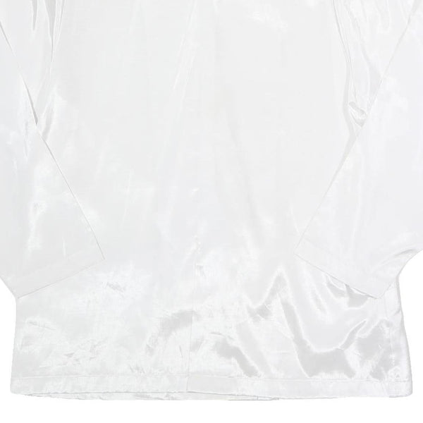 Womens White Silk Button Jacket L Plain Long Sleeve Classic Relaxed Fit
