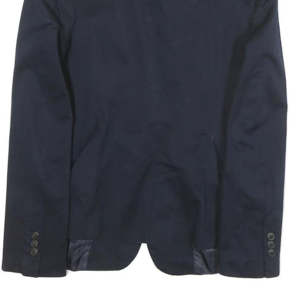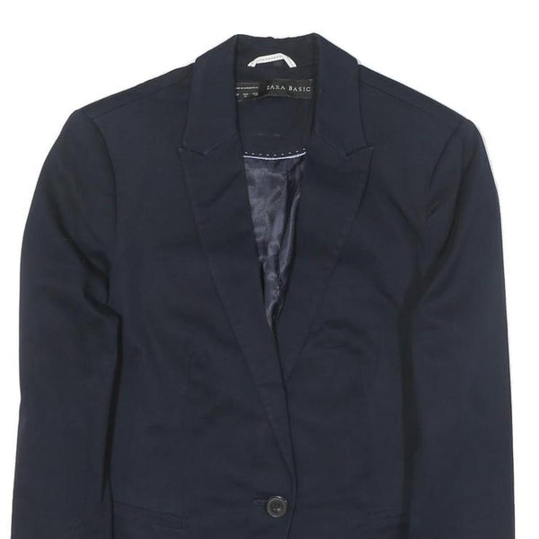 Zara basic womens navy blue casual jacket m cotton blend button plain tailored