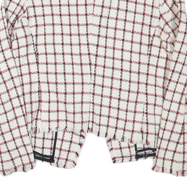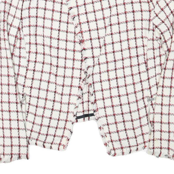 ZARA BASIC Womens White & Red Checked Classic Jacket M Cotton Blend Tweed