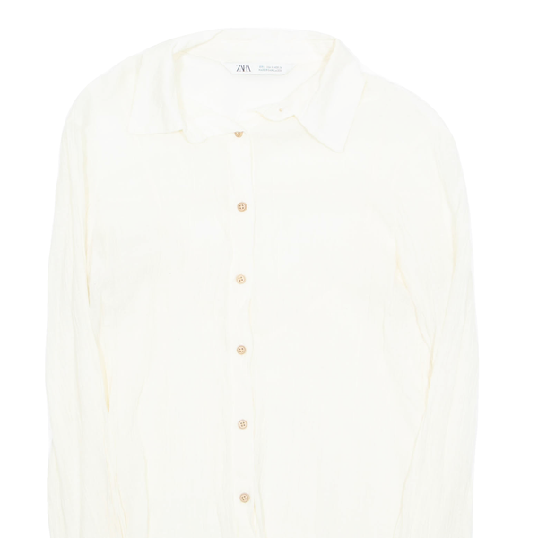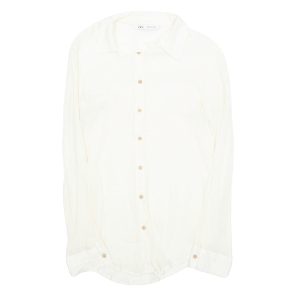 ZARA Womens Shirt Cream Collared Long Sleeve S