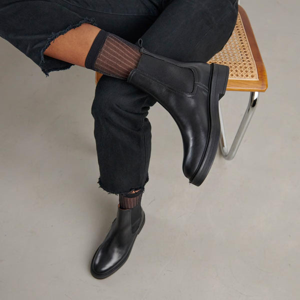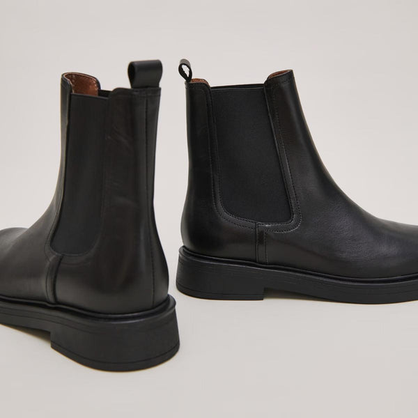 Make a rock statement with the AGEN lowboots! A pair of round-toe lowboots with elastic for maximum detail and character. We love their black leather and revisited combat boot style.