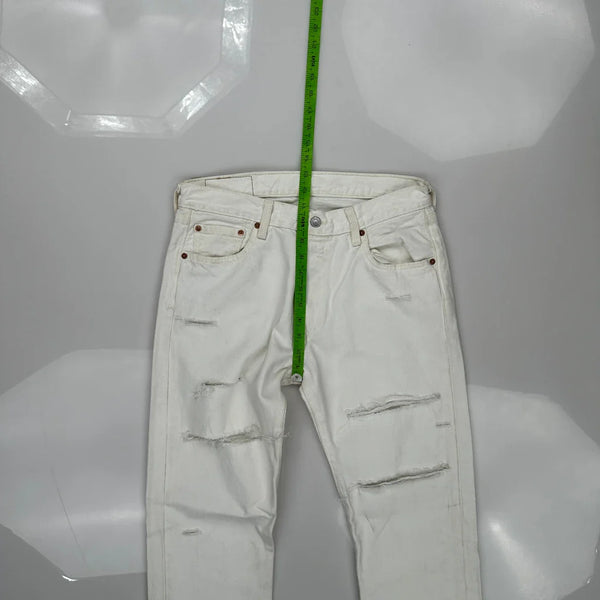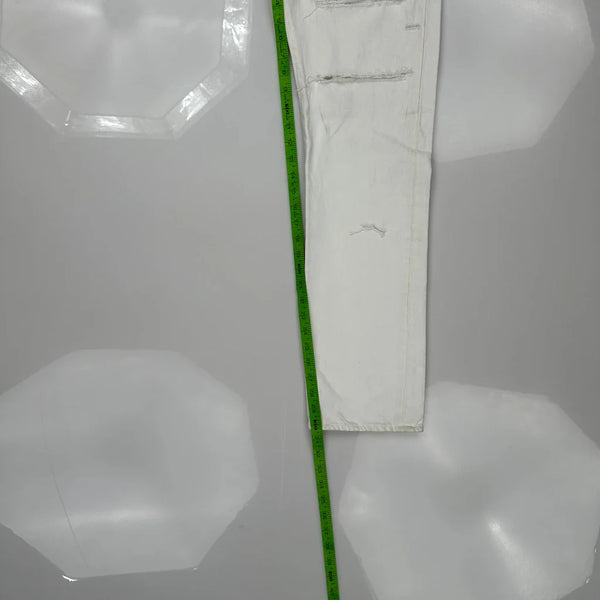 White Jeans With Ripped Details, Minor Marks On Bottom Hem.