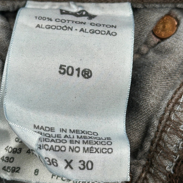 Levis 501 Jeans, Grey Color, Size 36X30, Made In Mexico