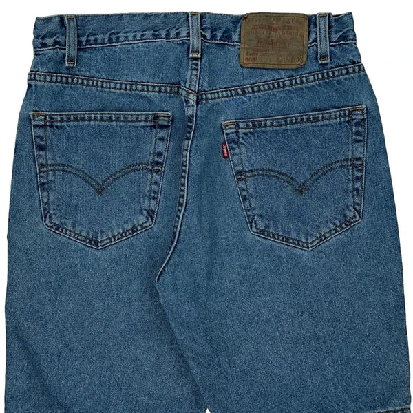 505 Levis Denim Shorts, fit a 30″ Waist and 10″ inseam.