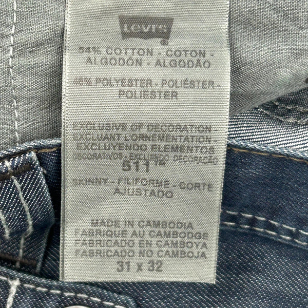 Levis 511 Skinny Jeans, 31X32, Made In Cambodia