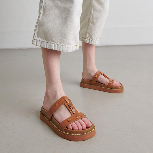 LUANA are our new platform sandals that will win your heart! You'll love their black glazed leather and gold details, including the Jonak monogram delicately embellished on the strap. Thanks to their platforms, you'll be able to enjoy them in total freedom, whether during the day or in the evening. In fact, thanks to their slight heel and beautifully affixed monogram, the LUANA are versatile, elegant and add a touch of sophistication to your little summer outfits.