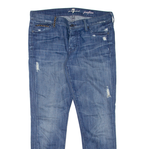 7 FOR ALL MANKIND Josefina Distressed Womens Jeans Blue Slim Skinny W31 L28