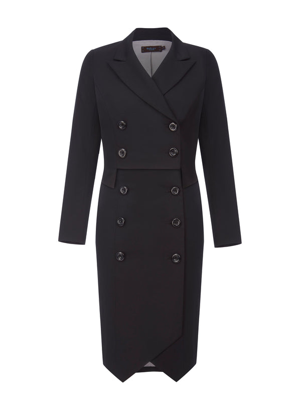 Infinitely versatile, this black suiting coat dress is a conceptually creative and structurally sound masterpiece.