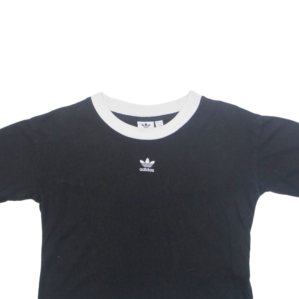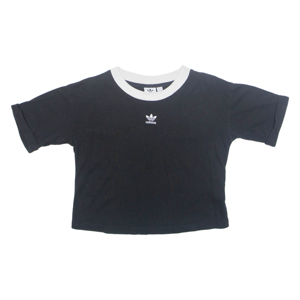ADIDAS Cropped Womens T-Shirt Black Crew Neck UK 10