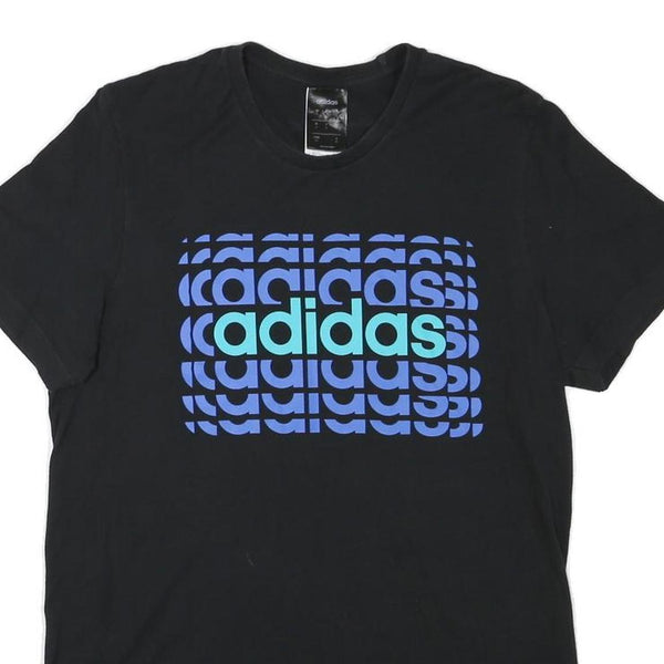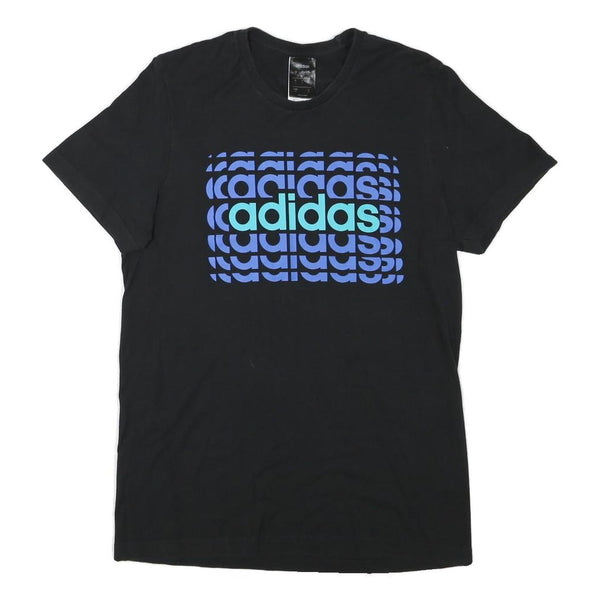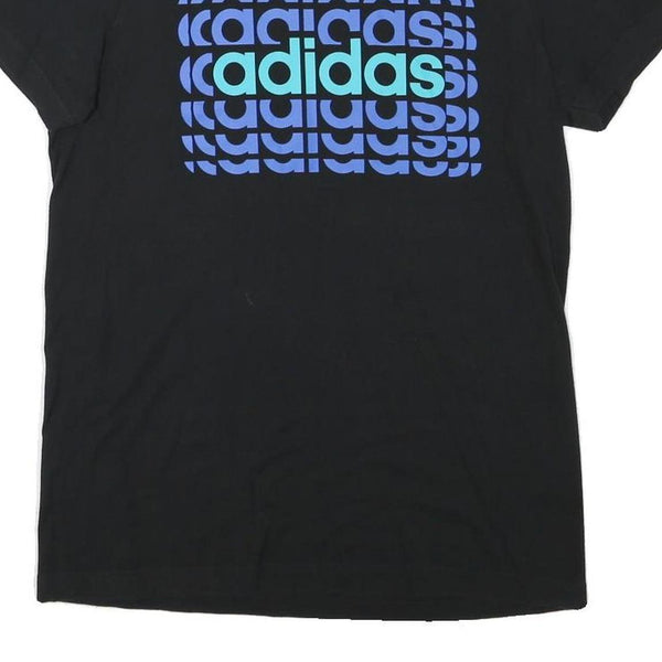ADIDAS Mens Black & Blue Graphic T-Shirt S Short Sleeve Crew Neck Cotton Blend
