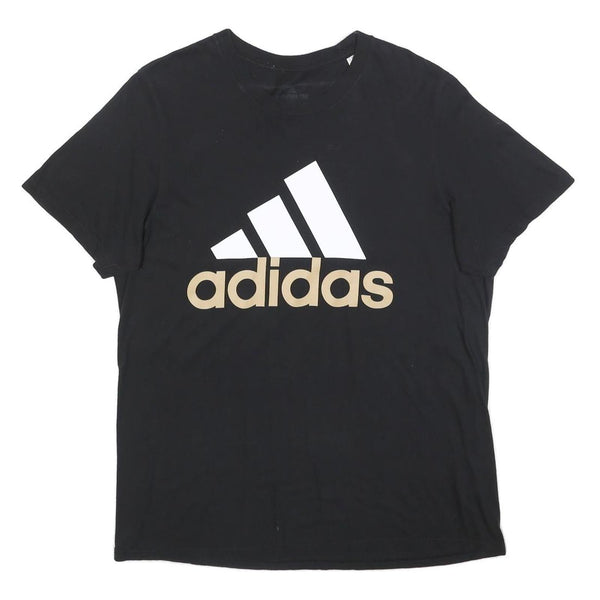 ADIDAS Mens Black Cotton Blend Logo Graphic T-Shirt L Crew Neck Short Sleeve