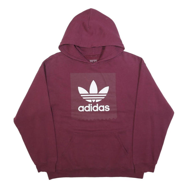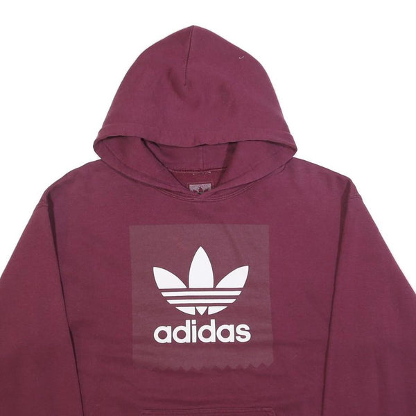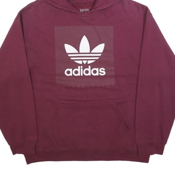 ADIDAS Mens Burgundy Hoodie L Cotton Blend Pullover Casual Streetwear