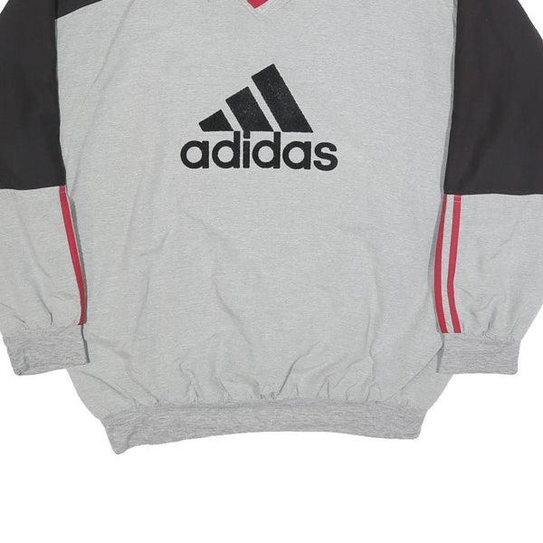 ADIDAS Mens Grey & Black Sweatshirt V-Neck L Cotton Blend Pullover Logo