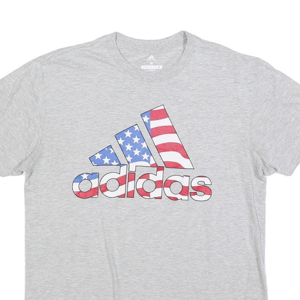 Adidas mens grey cotton blend t-shirt m short sleeve crew neck flag logo graphic