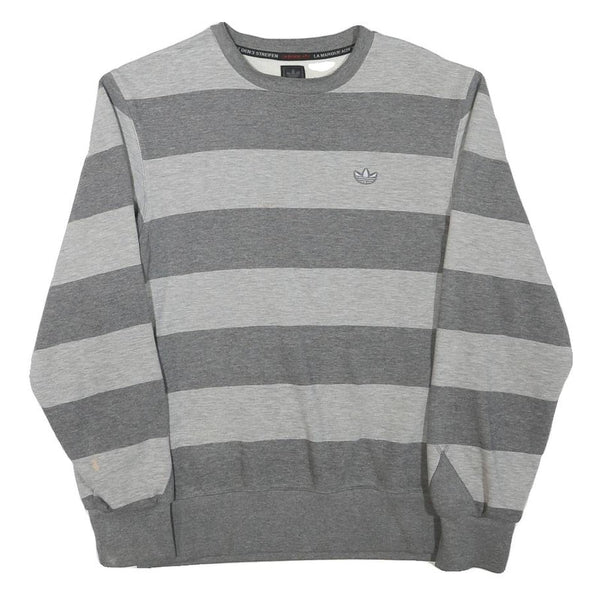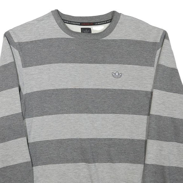 ADIDAS Mens Grey & Light Grey Striped Crew Neck S Sweatshirt Cotton Blend Casual