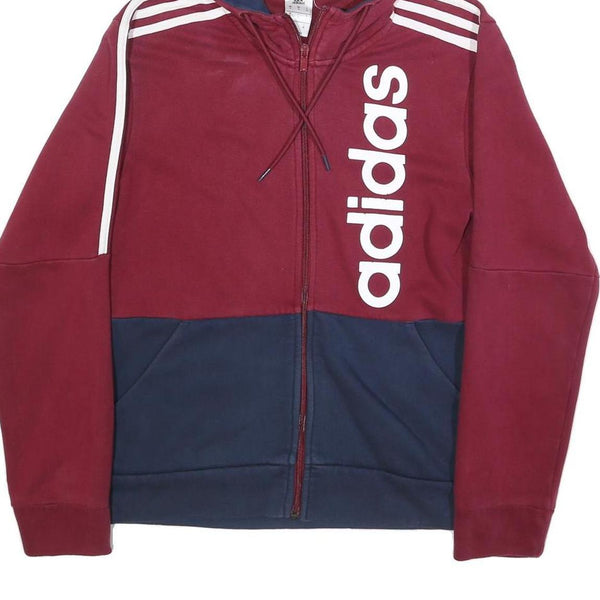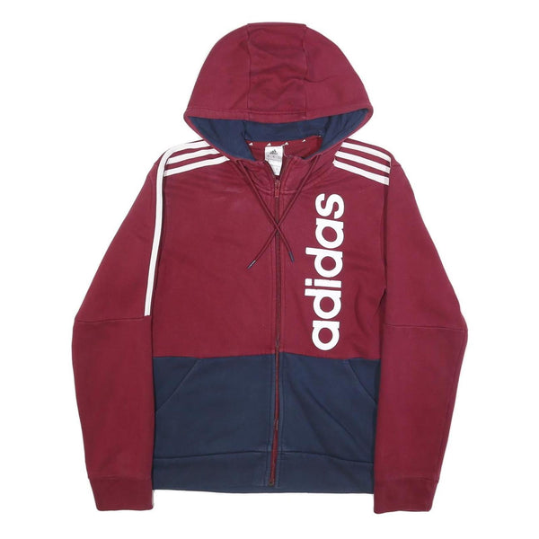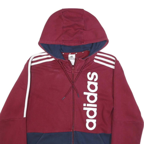 ADIDAS Mens Maroon & Navy Full Zip Hoodie S Cotton Blend Sportswear