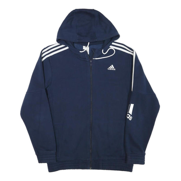 ADIDAS Mens Navy Blue Full Zip Hoodie M Cotton Blend Casual Sportswear