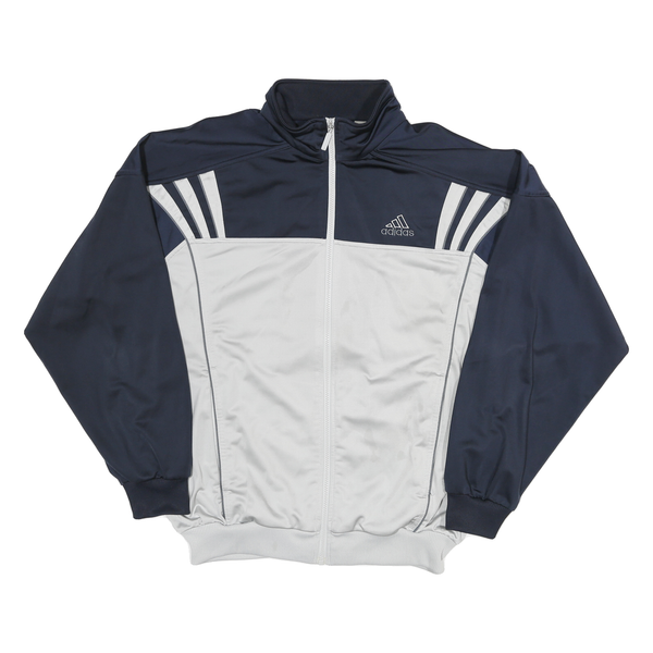 ADIDAS Mens Navy & White Track Jacket L Polyester Blend Zip Collar Casual