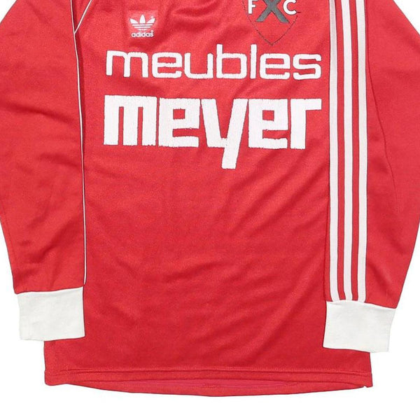 Adidas mens red white classic football shirt long sleeve collared polyester m