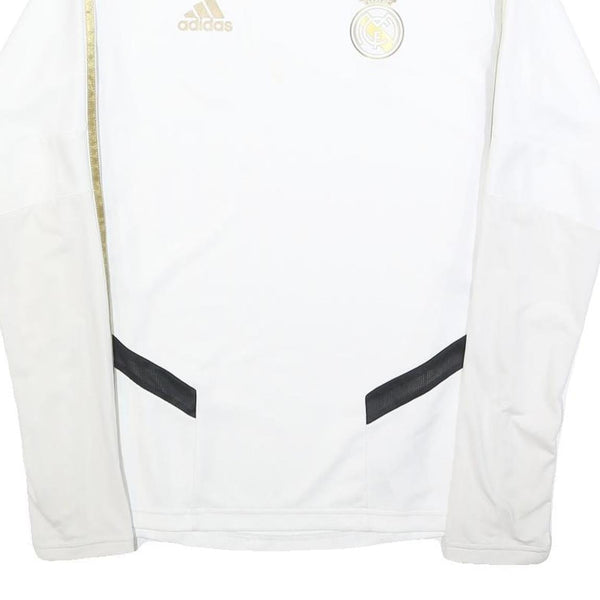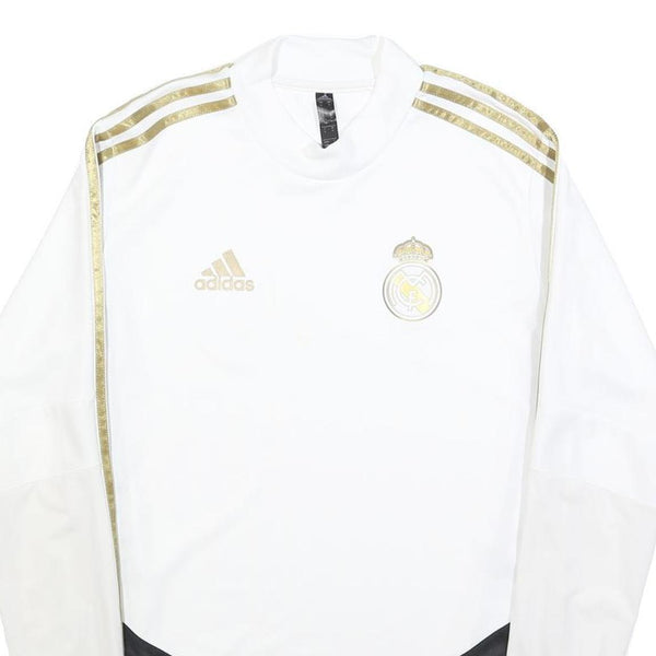 ADIDAS Mens White & Gold Football Shirt S Long Sleeve Crew Neck Real Madrid
