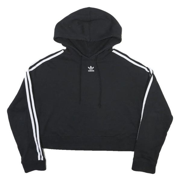 ADIDAS Womens Black Cropped Hoodie UK 12 Cotton Blend Casual Sports Sweatshirt