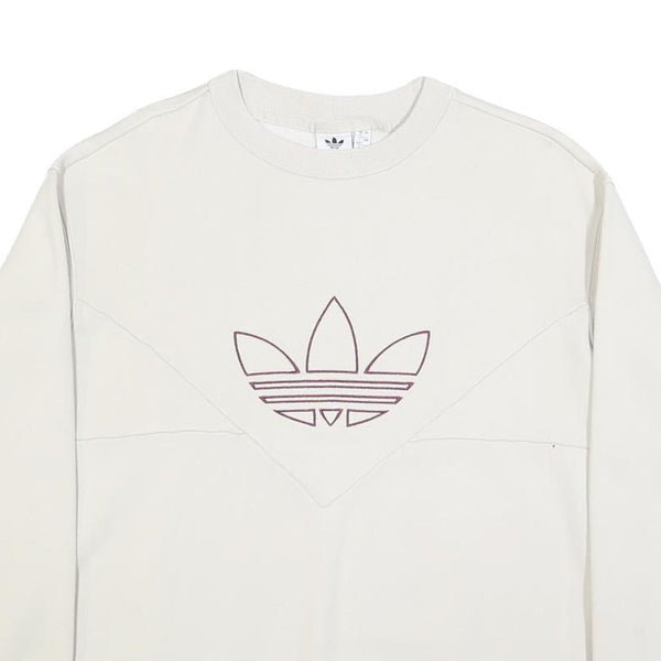 ADIDAS Womens Cream Sweatshirt Crew Neck UK 12 Cotton Blend Pullover