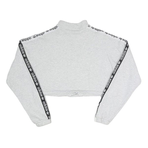 ADIDAS Womens Grey Sweatshirt 1/4 Zip Crop Top UK 8 Sportswear Logo Tape