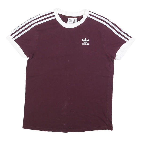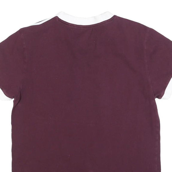 ADIDAS Womens Maroon & White Classic T-Shirt UK 6 Short Sleeve Crew Neck Cotton