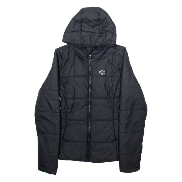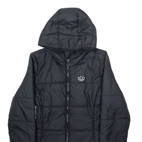 ADIDAS Womens Puffer Coat Black Hooded UK 8