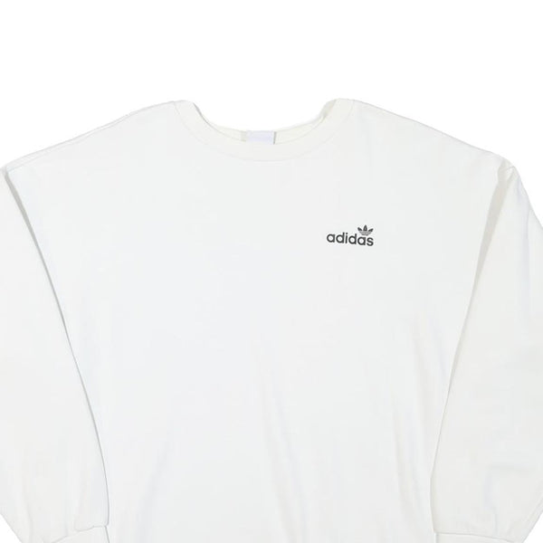 ADIDAS Womens White Cotton Blend Crew Neck UK 10 Sweatshirt Casual Pullover