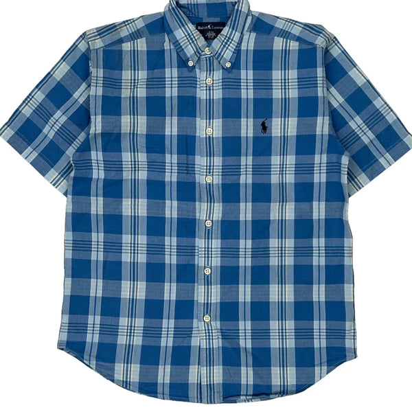 Age 14 ralph lauren checked short sleeve shirt - large blue cotton