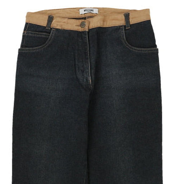 Vintage Moschino Age 16 blue jeans, fit a 26" waist and 32" inseam.