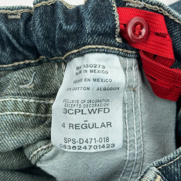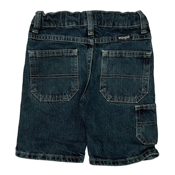 Age 4 Wrangler Denim Shorts, fit a Xx-Small and 5″ inseam.