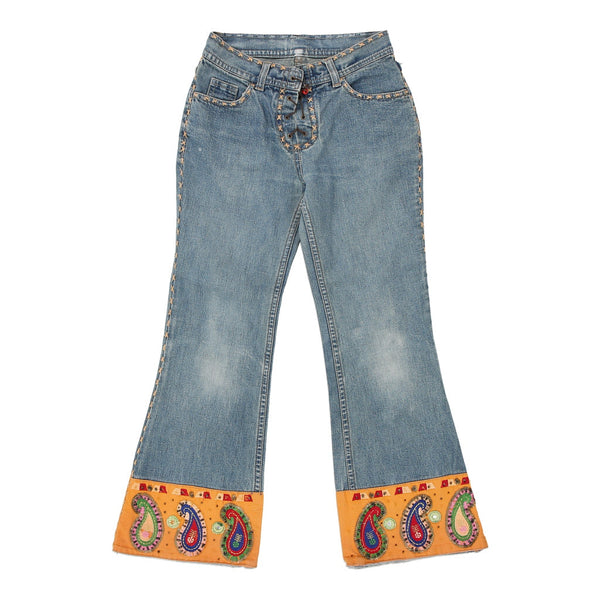 Vintage Benetton Age 8 blue jeans, fit a 25" waist and 23" inseam.