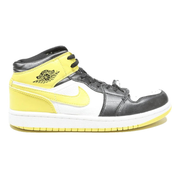 AIR JORDAN 1 Mid Mens Lace-Up Trainers Black & Yellow Leather UK 7.5 Iconic