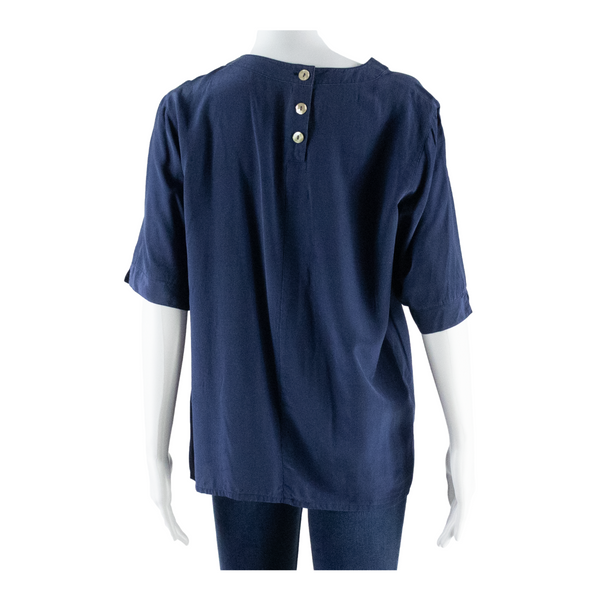 ALBERTO FABIANI Womens Blouse Blue Faux Silk S